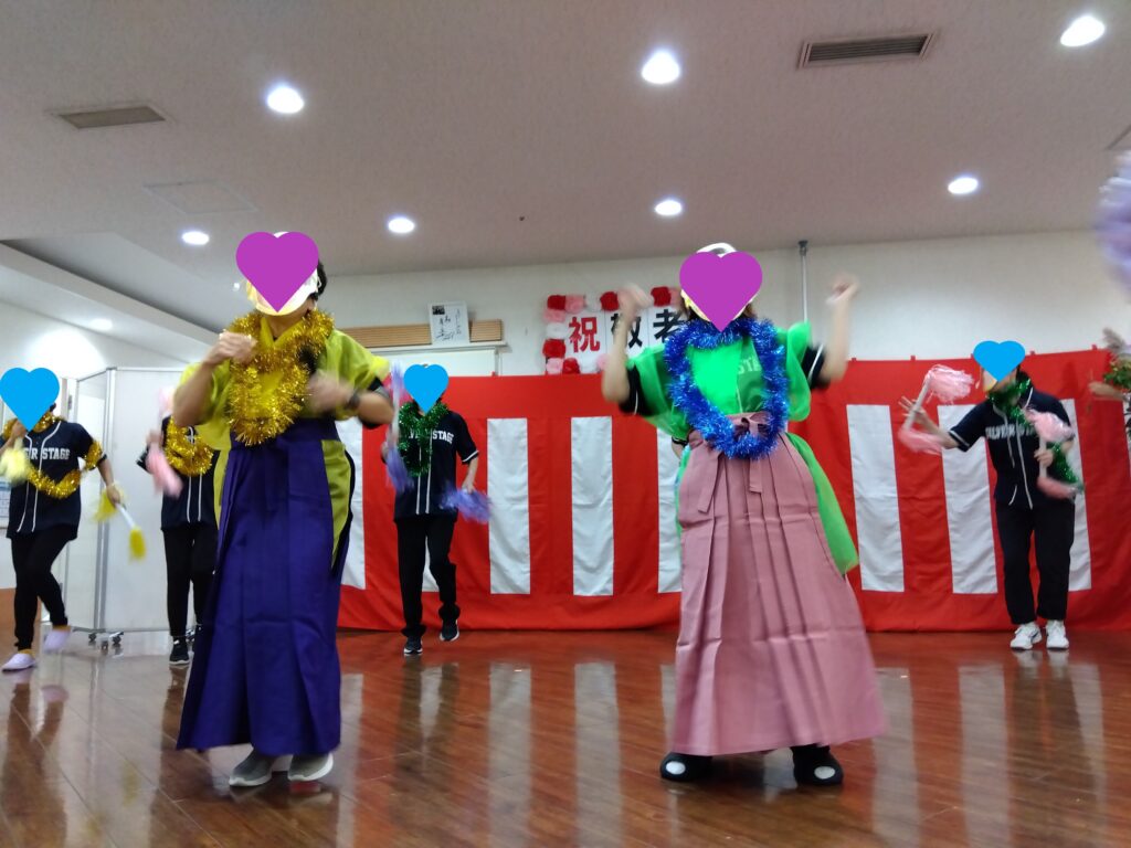 次は職員の出し物でシルバーボーイズ🏊とダンスです!笑いあり、そしてご利用者様にもポンポンを持って頂き参加しました(^^♪