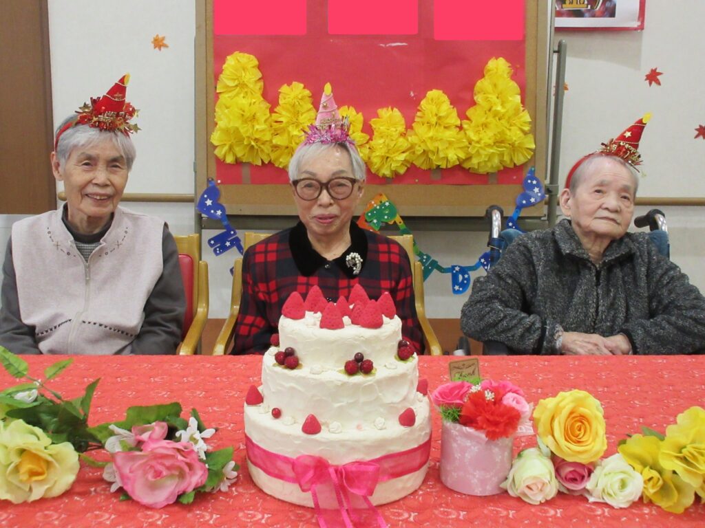 11月 誕生会 silstaff0928 2025年11月28日 2025年11月28日 お知らせ / ホーム / 行事風景(有料老人ホーム) 11月は3名のご利用者様が誕生日を迎えられました。 おめでとうございます😊 昼食はちらし寿司を頂きました! 前の投稿令和7年度12月行事・レクリエーション予定表(デイサービス) 次の投稿