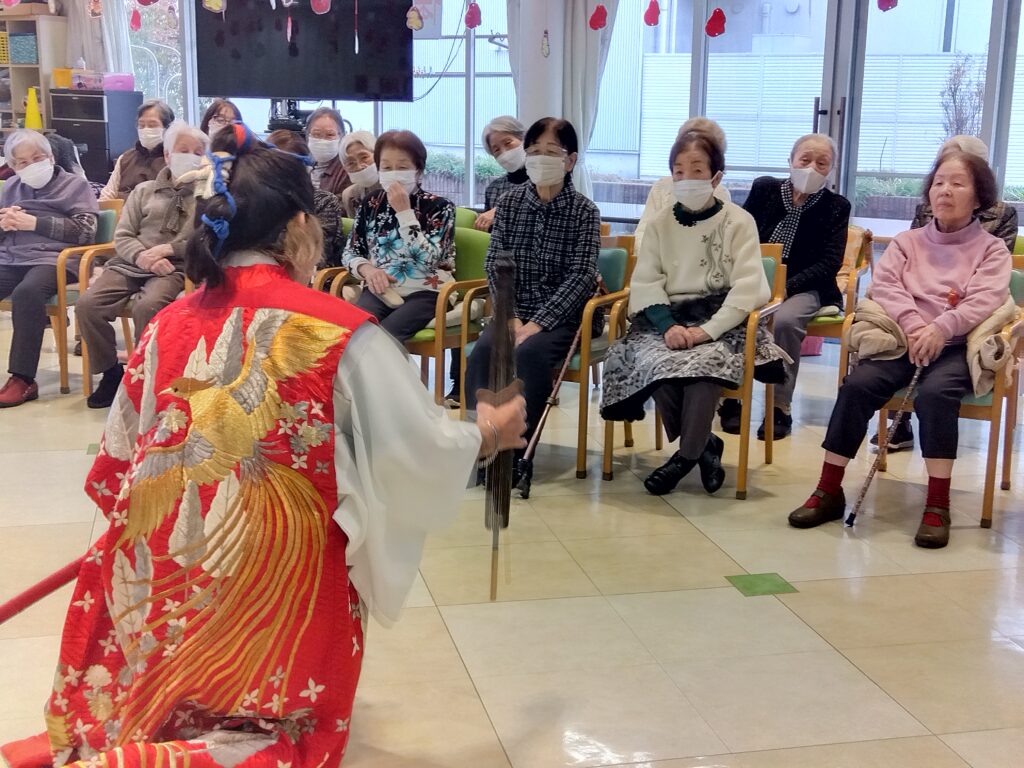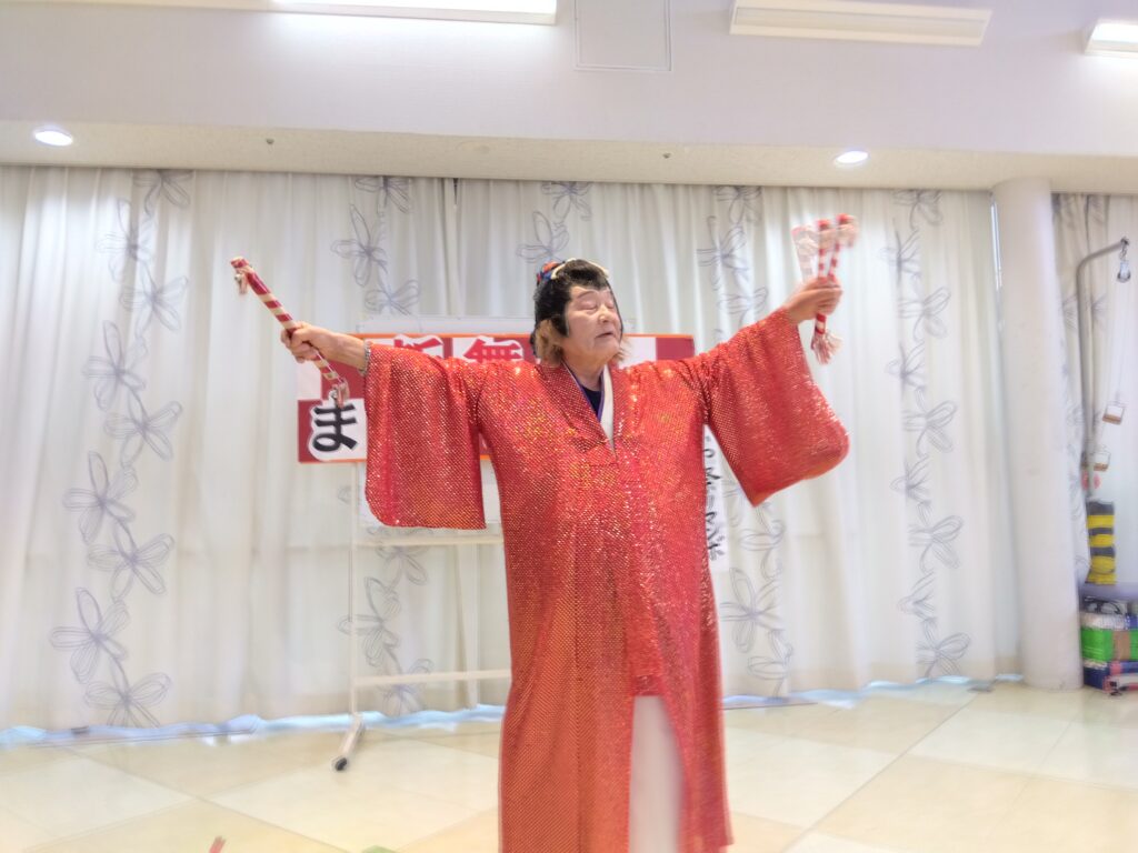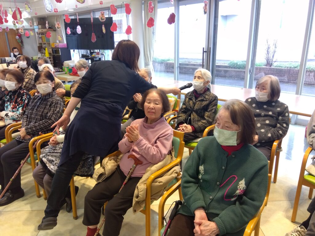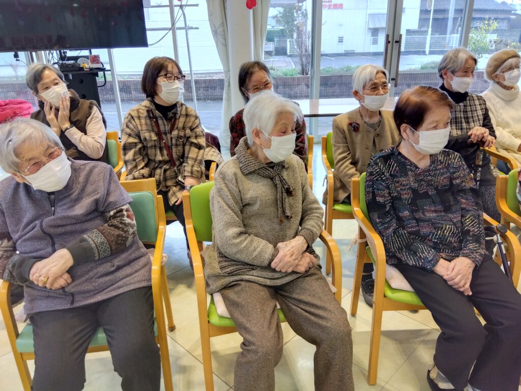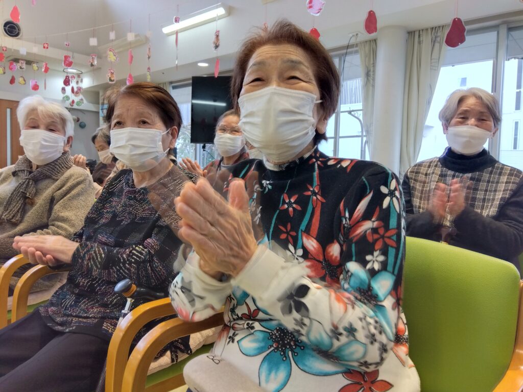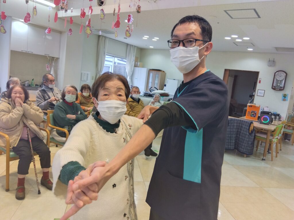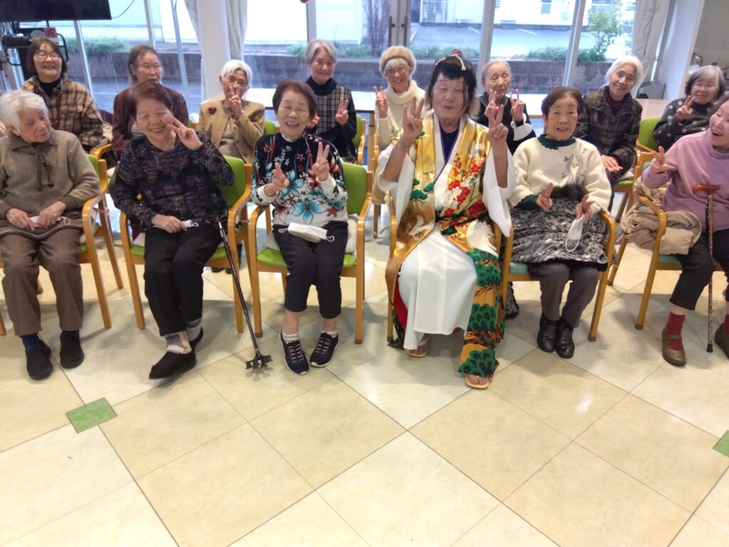 新年会行事 silstaff0928 2026年1月24日 2026年1月24日 デイサービス / 行事風景(デイサービス) 新年会を開催致しました。ボランティア慰問に来て頂き、日本舞踊を披露して頂きました♪皆さんとっても魅了されていました♡その後は、お楽しみくじ引きで大盛り上がりでした(*^^*) 前の投稿⛩初詣外出 次の投稿R8年2月行事・レクリエーション予定表