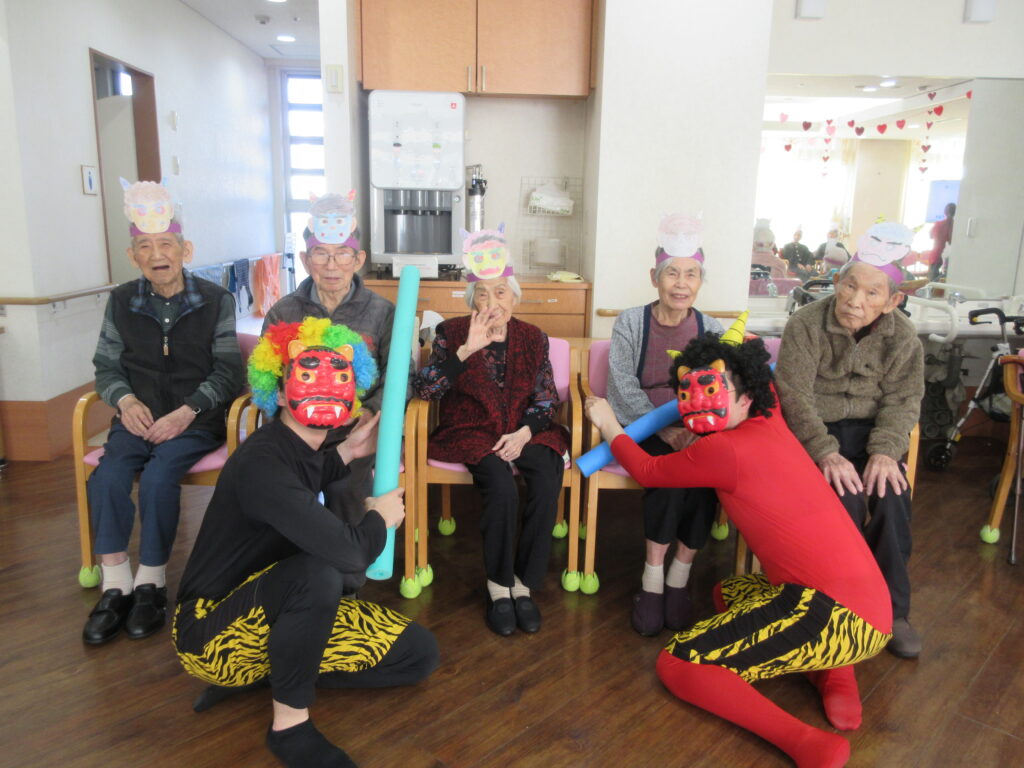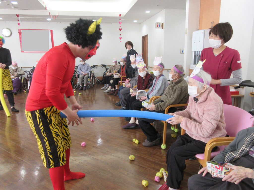 職員が鬼役をして、利用者様が豆まきをしました☻